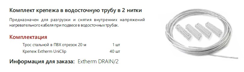 Extherm DRAIN/2 Комплект крепежа в водосточную трубу в 2 нитки, 20 м (трос+крепежи)