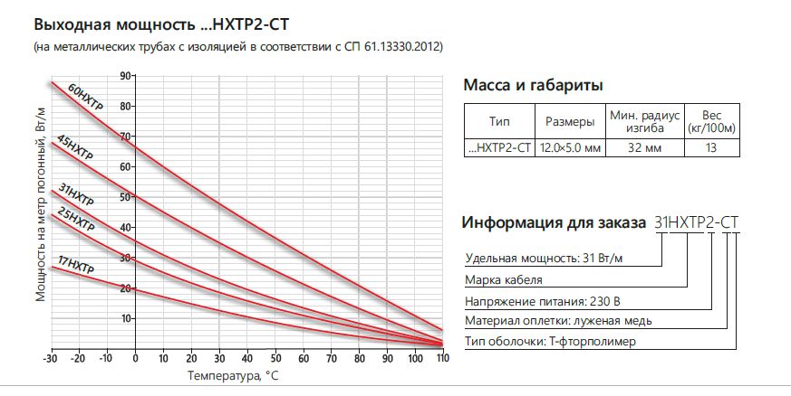 Варианты удельной мощности, Вт/м, при 10 ° С 17, 25, 31, 45, 60