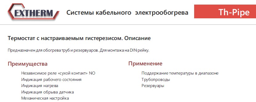EXTHERM Th-pipe. Термостат для управления системой электрообогрева на трубах.