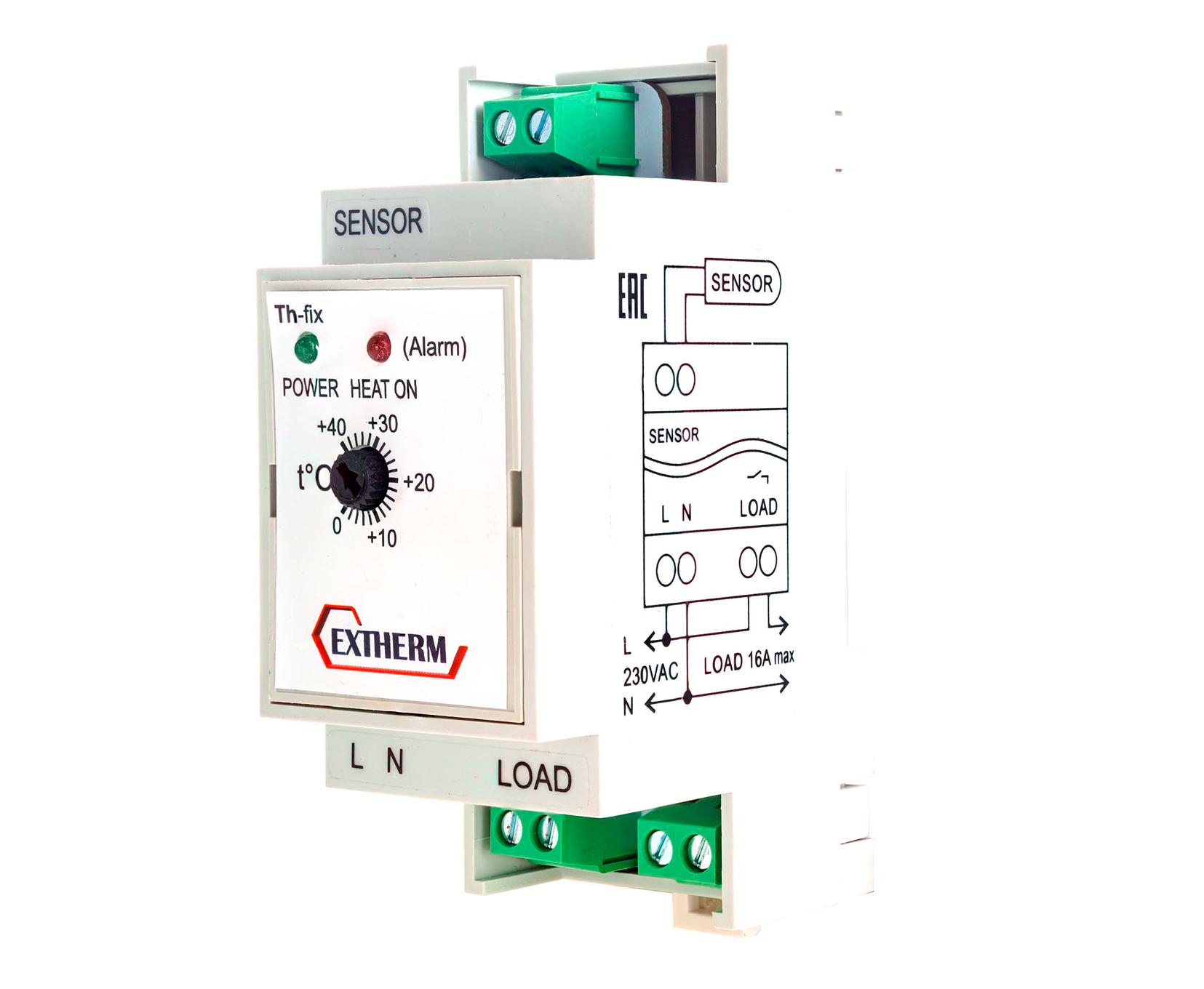 Терморегулятор EXTHERM Th-fix предназначен для обогрева поверхностей с фиксированной температурой, например, «теплыми полами» или в холодильной камере. Для монтажа на DIN рейку.