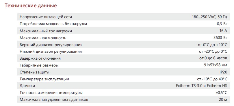 | Датчики | Extherm TS-3.0 и Extherm HS | |