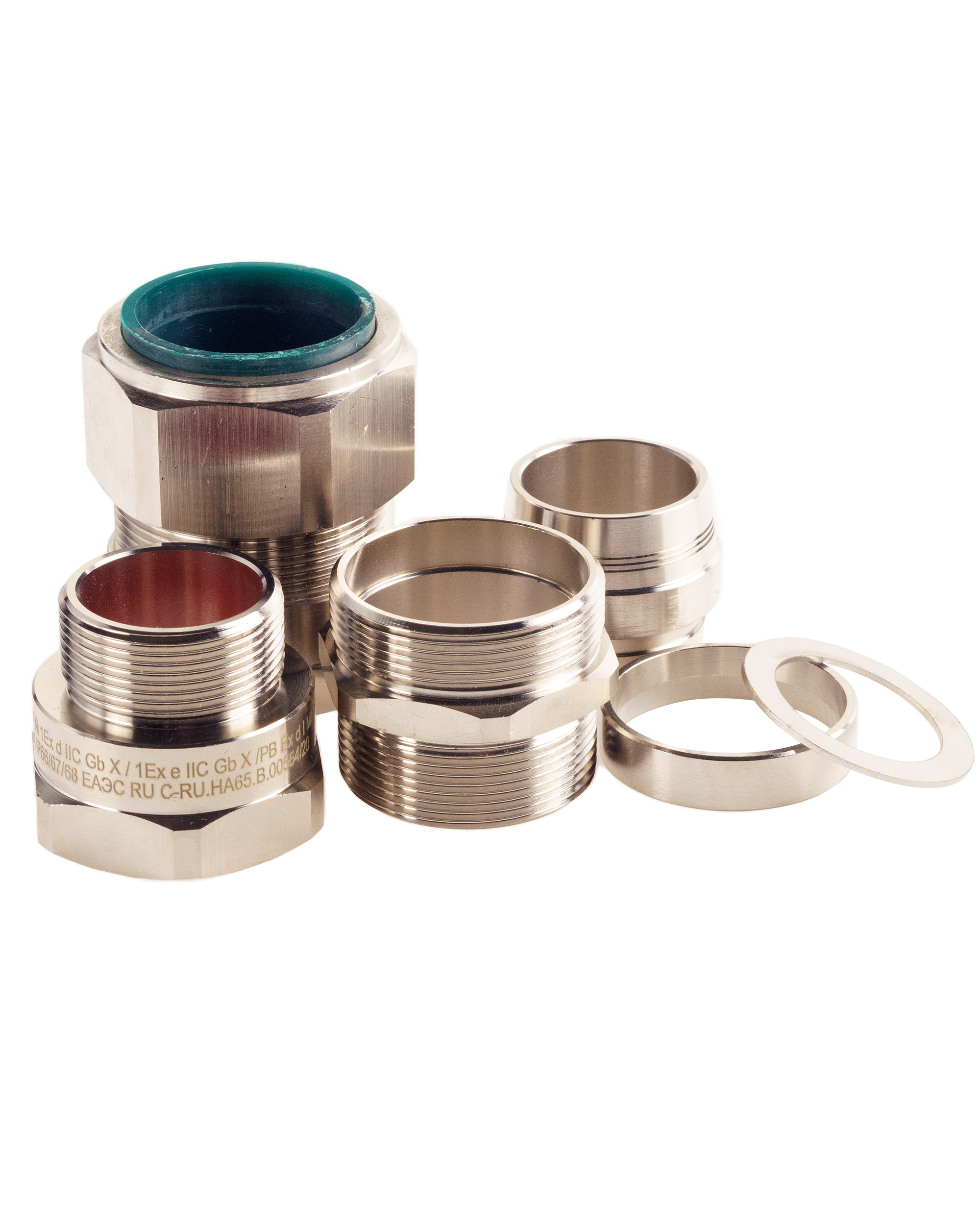 Взрывозащищенный кабельный ввод 32AK 05 для бронированного кабеля с двойным уплотнением для всех типов брони/оплетки. Надежно защищают кабель от случайного выдергивания, используются в местах, где необходимо иметь уплотнение IP 66/67/68 на внешней оболочке кабеля и взрывозащищенное уплотнение на оболочке под броней.