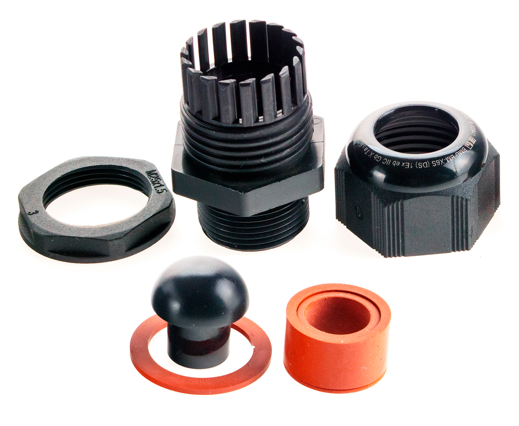 Extherm BM-X6S-LP (DS) Кабельный ввод взрывозащищенный М25х1,5 с уплотнением для небронированного силового кабеля Ø10-18мм, с уплотнительным кольцом и контргайкой, полиамид