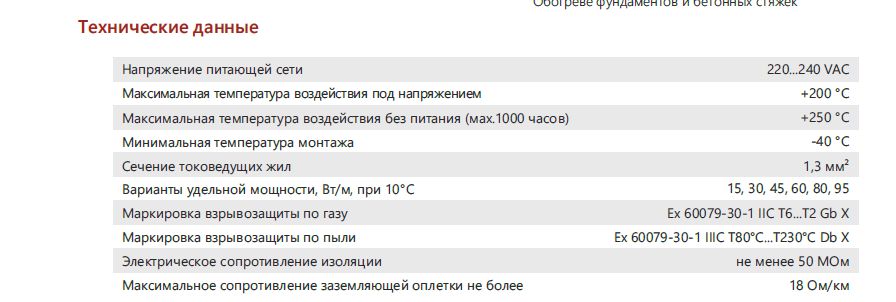 ! Не рекомендуется применять в системах антиобледенения открытых площадей, обогреве фундаментов и бетонных стяжек.