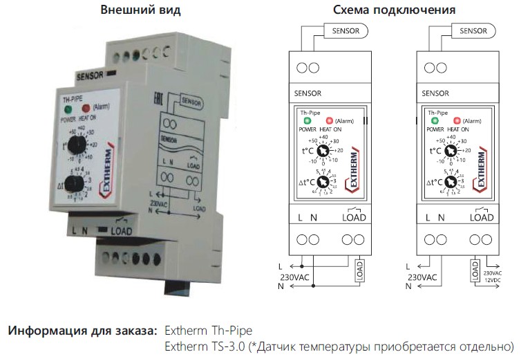 EXTHERM Th-pipe. Термостат для управления системой электрообогрева на трубах.
