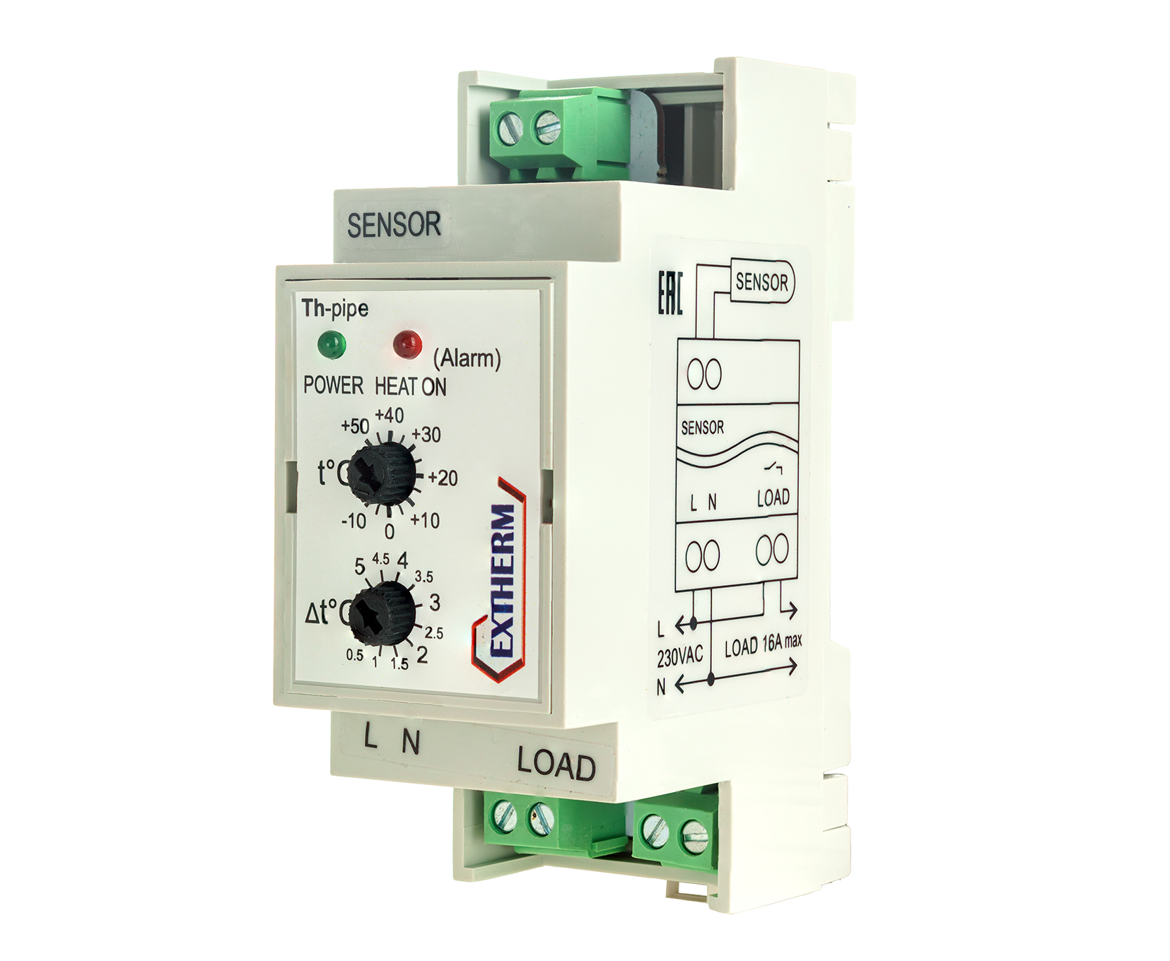 Терморегулятор EXTHERM Th-pipe предназначен для обогрева труб и резервуаров для монтажа на DIN рейку.