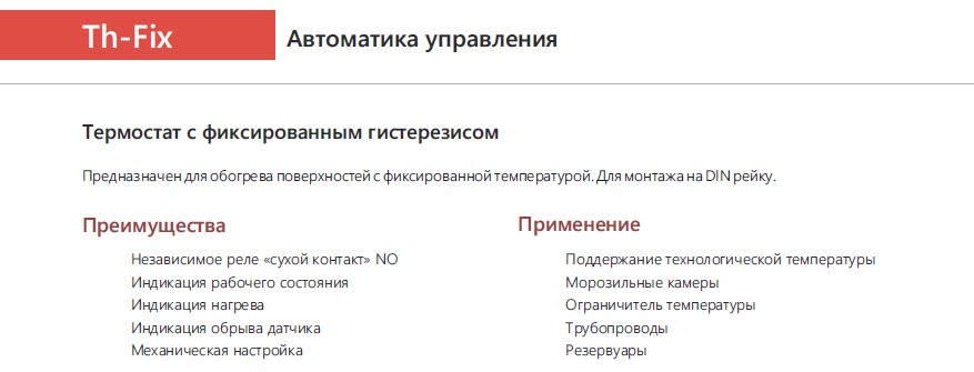EXTHERM Th-fix - терморегулятор предназначенный для обогрева поверхностей с фиксированной температурой.
