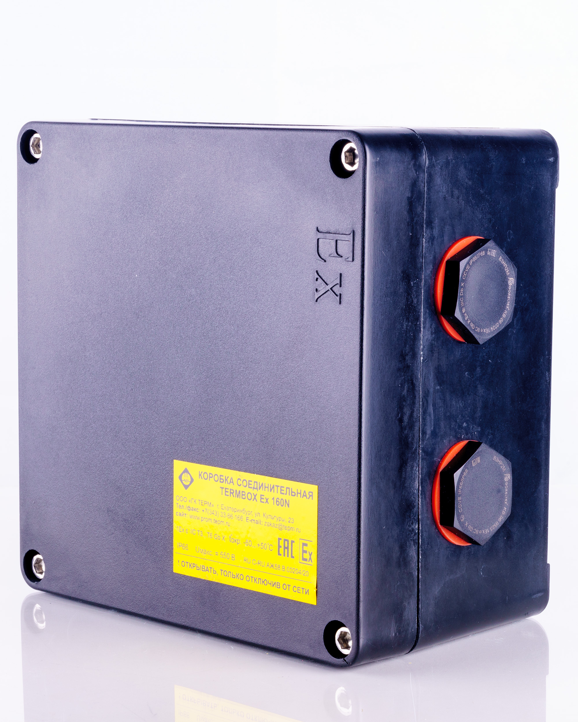 Коробка соединительная Extherm TermBox Ex 160N предназначена для соединения и разветвления кабелей нагревательных саморегулирующихся, подключения силовых кабелей к кабелям нагревательным саморегулирующимся.Коробка устанавливается непосредственно на трубопроводе и может применяться с тепловой изоляцией толщиной до 120 мм. Нагревательный кабель вводится под тепловую изоляцию без применения дополнительных устройств. Применяемые клеммные наборы позволяют выполнить подключение многожильных или одножильных кабелей сечением от 0,5 до 10 мм².