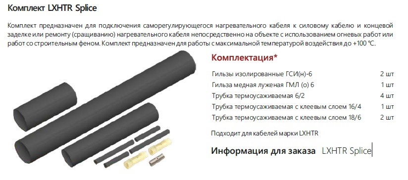 Extherm LXHTR splice - комплект для ремонта/соединения саморегулирующихся кабелей LXHTR термоусадочный.